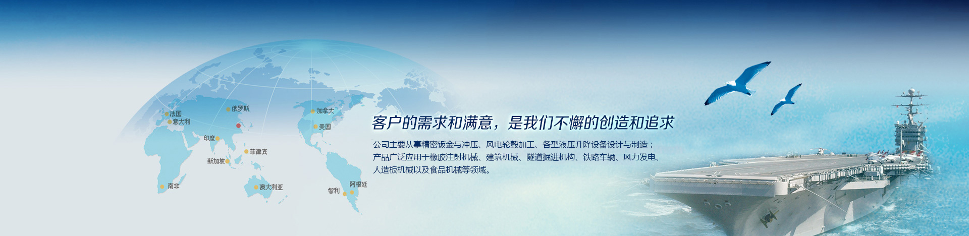 企业自二零零七成立以来,已通过ISO9001:2000国际质量体系认证。公司主要从事精密钣金与冲压、精密机械加工、液压油缸、液压站、高压胶管以及工业机器人的设计与制造;产品广泛应用于橡塑注射机械、重型运输车辆、高速列车、远洋船舶、风力发电、以及矿山机械等......【查看更多】 |